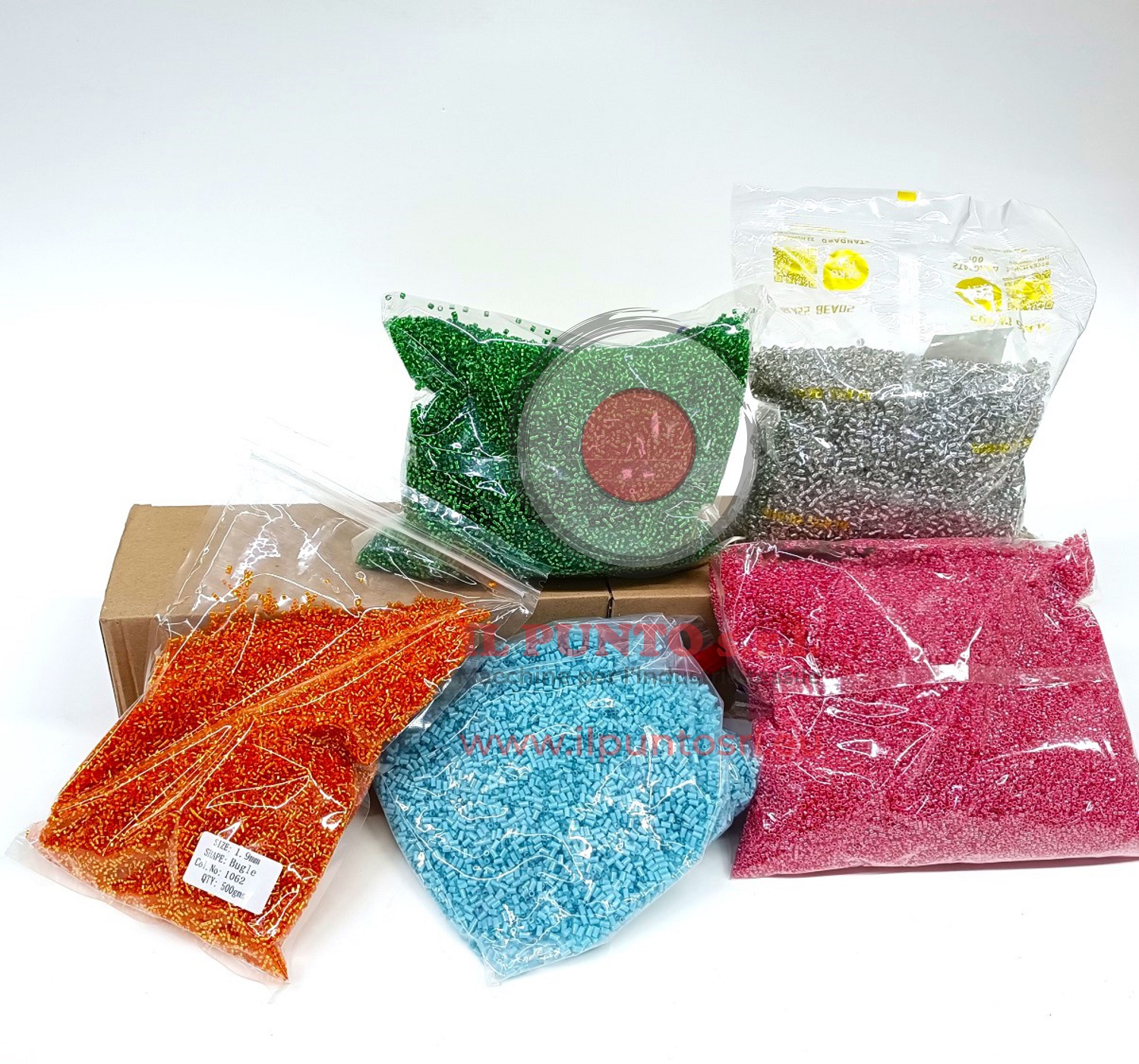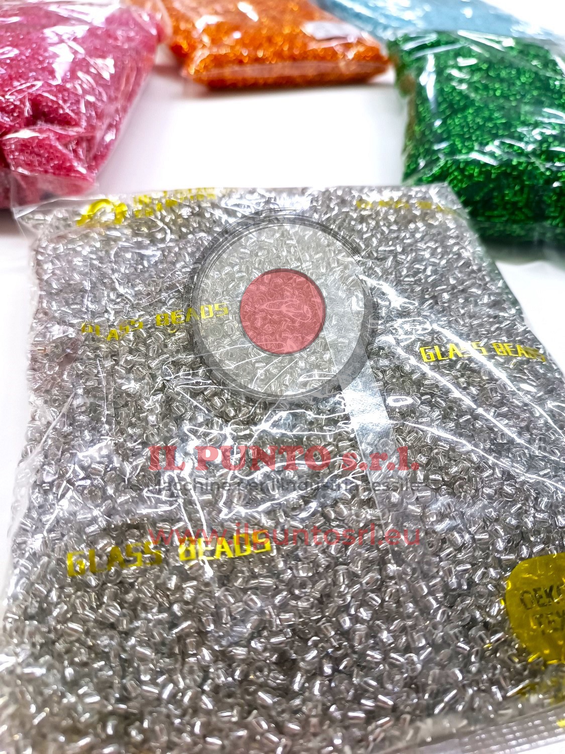 Le perline in vetro sono disponibili in formato sfuso, all’interno di confezioni da 500 gr (0,5 Kg) e 1000 gr (1 Kg).