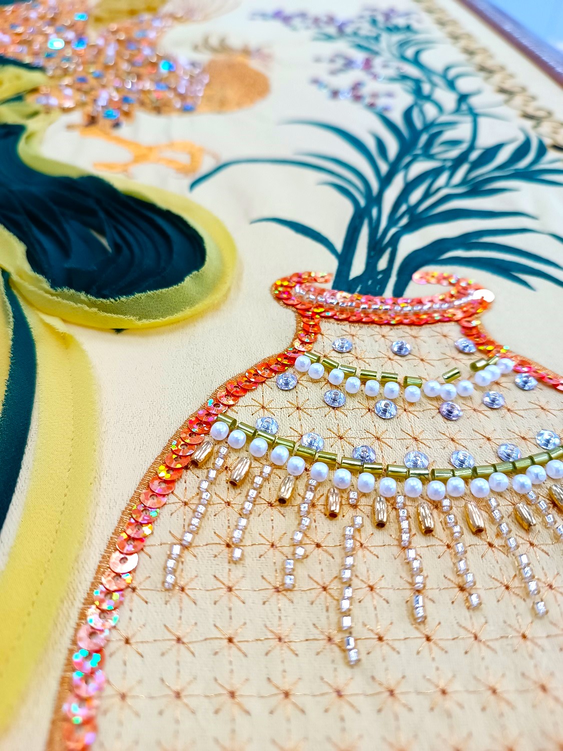 Immagina di creare un abito che abbia un affascinante ricamo multicolor e che risplenda grazie al luccichio di diversi tipi e forme di paillettes e di perline.